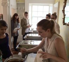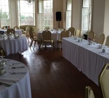 After drinks and canape downstairs, the 63 guests took their seats in the upstairs Long Room. Another beautifully decorated room in the Manor, but two flights of stairs up from the kitchen, so we were really feeling it by the end of the day!